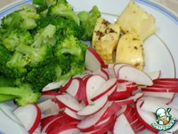 Отварить брокколи 2-3 минуты до такого состояния, чтобы она немного хрустела. Разделить на соцветия. Помыть редис и порезать полукольцами. Маринованный сыр порезать на небольшие кусочки. |