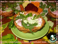 Описание: Корзиночки из картошки, свеклы, морковки и тыквы. Начинка: грибочки и творожная корона. На конкурс «Королева фуршета»