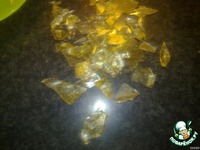 Для карамели сварить сироп из воды, сахара и глюкозы. Когда она будет готова, выложить её на слегка промасленный противень и оставить остывать. |