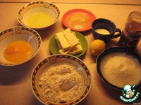 Подготовьте все продукты для теста: мука, яйца( белки отделите от желтков), сахар, мед, молоко, маргарин, разрыхлитель, половинка лимона, какао. |