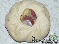 Залепливаем края так, чтобы в середине осталась дырочка, она нам нужна для того, чтобы заливать туда бульон. |
