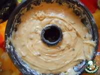 Форму для кекса смазать маргарином и обсыпать мукой, выложить в неё тесто и равномерно распределить по кругу. Разогреть печку до 200 градусов и поставить выпекаться на 40-45 минут. |