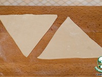 Тесто тонко раскатать и вырезать из него треугольники. |