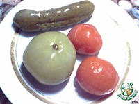 Такие у меня маринованные овощи. Оговорюсь, что маринад у них некислый и не очень соленый. |