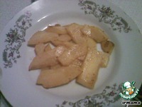 Куриную печень замочила в соевом соусе (50 г) на 10 минут. Тем часом тыкву нарезала на кусочки и обжарила на подсолнечном масле. Не солила. |
