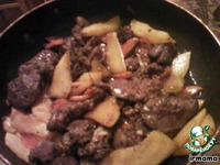 Добавила соус к печени, тыкве, морковке. Поставила протушить на 5-7 минут |