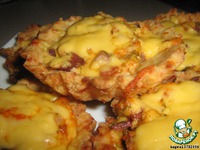 Заполняем начинкой, сверху присыпаем тертым сыром и убираем в духовку минут на 10, пока сыр не расплавится или не покраснеет (на любителя). |