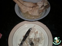 Вот тушку отделили, и сварили 5 мин. Я варила в микроволновке, так быстрее, в кульке... чтобы не стреляла на стенки |