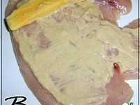Тыкву очистить и нарезать полосками шириной 1-2 см. Сметану смешать с горчицей. Смазать смесью каждый кусочек филе, положить на него брусочек тыквы. |