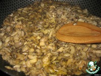 Измельчаем наши вешенки и лук, обжариваем их на растительном масле. |