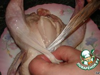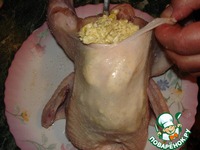 Запекать в духовке при температуре 220*С в течение 1 часа на 1 кг курицы. |
