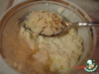 А пока готовим 3-ю "шубку" - трем сыр, смешать с оставшимися сливками и добавляем миндаль. |