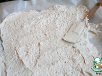 Застелить противень пергаментом, выложить сверху слой безе, равномерно распределить. Поставить в предварительно нагретую до 150 градусов духовку на 1 час. |