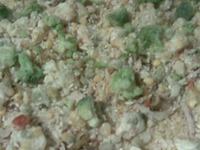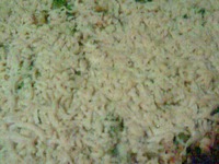 Замерзшее тесто, большую часть, трем на крупной терке на противень. Разровнять (у меня не было бумаги для выпечки, застелила фольгой). |