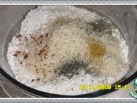 Посолить, добавить мелко тертый сыр и сухие травы. |