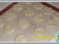 Разогреть духовку до 170 С. Тесто раскатать толщиной в 1 см, выемкой вырезать круглые печенья, |