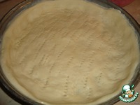 Оставшееся тесто кладем шариком на смазанную сливочным маслом форму и разминаем тесто руками по всему дну формы. Растянутое тесто протыкаем вилкой. |