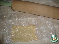 Хлеб нарезать кусочками, отрезать корочки. Положить полученный кусочек на пленку и сверху также покрыть пленкой. Раскатать хлеб тонко скалкой, чтобы кусочек стал плоским. |