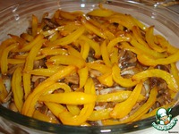 5. Сверху выкладываем грибы с луком и желтый перец |