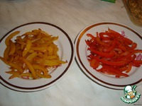 2. В сковороде разогреть масло и обжарить перец (красный и желтый по отдельности). |