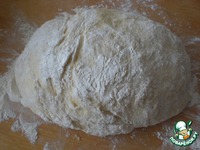 Немного остывшую маргарино-медовую массу смешиваем с кефирной. По стакану добавляем муку и руками вымешиваем мягкое тесто. |