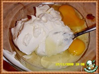 Сметану, яйца, соль, перец взбить венчиком до однородной массы... |