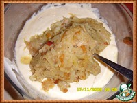 По рецепту: шпик нарезать кубиками и обжарить, помешивая, на среднем огне. Добавить лук и тушить до позрачности. Посыпать мукой, перемешать и остудить. Изменила на курдючное сало (~100 гр) и... |