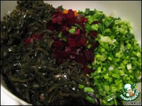 так же свёклу (кубиком) добавить мелко нарезанный зелёный лук и морскую капусту |