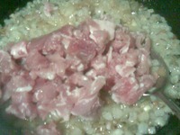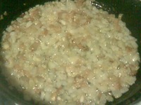 Пока тесто подходит, займемся начинкой. Сало порезать мелкими кубиками, обжарить. Лук тоже измельчить и добавить к салу. |
