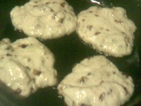 Разогреть сковороду с растительным маслом и выкладывать ложкой массу, обжаривать с двух сторон, как оладки. Ложку постоянно смачивать в холодной воде. Так тесто лучше будет отставать. |