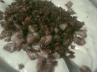 Ну вот, тесто подошло, начинка готова. Соединяем вместе - начинку, тесто, рубленую зелень, давленый чеснок. Если не очень соленая масса, можно добавить приправу, в моем случае это "Вегетта". |