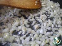 На сковороде разогреть оливковое масло. Обжарить до слегка золотистого цвета мелко нарезанный лук и мелко нарезанный чеснок. |