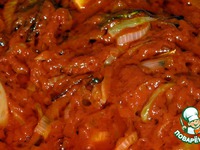 В конце жарки добавляем чеснок, 1/2 часть от общей, томат-пасту, немного воды и тушим около 10 минут на слабом огне. |