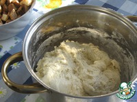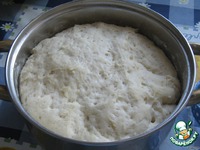 Добавить муки так, чтобы получилось не липнущее тесто, вернее не сильно липнущее, довольно тугое. Оставить подходить на 2-3 часа. |