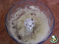 Всыпать просеянную муку, хорошенько размешать. Очищенный лук перемолоть в блендере или порезать как можно мельче. |