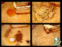 Половину теста выкладываем ложкой в застеленную форму (диаметр 24-26 см), распределяем по дну, формируем невысокие бортики.