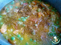 Все подготовленные продукты добавить в казан к тушеным овощам. Посолить по вкусу. Да, я еще немножко (где-то 1 чайную ложечку) сахара добавила, так как у меня был немного кисловато овощное ассорти. |