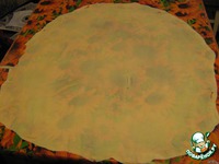 Дать тесту "отдохнуть" минут 10-15. Затем каждый шарик тонко раскатать и аккуратно "вытянуть" тесто, растягивая по окружности. Таким образом получится очень тонкий лист, как турецкий лаваш. |