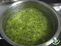 киви очистим от шкурки и измельчаем блендером или миксером, добавим сахар, хорошо прогреем на небольшом огне (до кипения), добавим размоченый в воде желатин (или "Желфикс" - 1 упак.), постоянно помешивая, до растворения желатина.