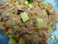 Описание: Очень интересное и вкусное сочетание консервированного тунца и стручковой фасоли с овощами. А для диетического питания можно использовать даже как основное блюдо, особенно для легкого ужина.