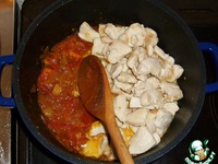 Всё размешайте и тушите с закрытой крышкой при слабом кипении, пока мясо не станет мягким и нежным (около 30-и минут). |