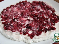 На меренгу положить половину крема, с клюквы слить оставшийся сироп и выложить половину ягод на крем. |