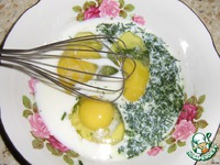 Приготовить смесь для омлета. Смешать 3 яйца, треть стакана молока и мелко порубленную зелень. Посолить. |