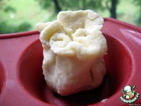 Присборить сверху узелком, подобно вонтонам. Положить их в формочки для маффинов или просто на бумагу для выпечки. |