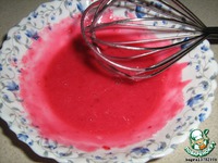 Теперь готовим глазурь: тщательно растираем сахарную пудру с клюквенным соком. |