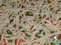 ИТАК! Раскатываем тесто на поддоне для выпечки, предварительно смазав его маргарином [:-} , выкладываем слоями: