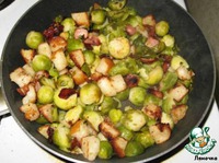 К бекону и сухарикам выложить капусту и пожарить все вместе 2~3 минуты. |