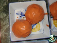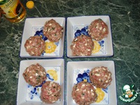 Из полученного фарша скатать тефтельки, в серединку каждой положить вареный яичный желток. Т.к. уменя фарш ещё немного остался - добавила в серединку кубик сыра (к оставшемуся)... |