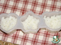 Современные японцы для формирования онигири используют разнообразные молдинги (специальные формочки с функцией пресса). В молдинг кладем немного риса. |