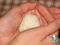 Описание: Ни один японец не может представить свою жизнь без риса. Онигири (от глагола нигиру - сжимать) в точности отражает процесс их приготовления: в ладонь накладывают тeплый рис, в середину кладут начинку и начинают осторожно сжимать, «обeртывая» рис вокруг начинки. На новогоднюю семейную трапезу готовят онигири с разными начинками, символизирующими счастье и удачу в наступающем году.